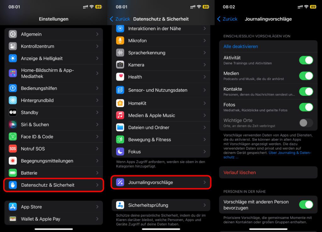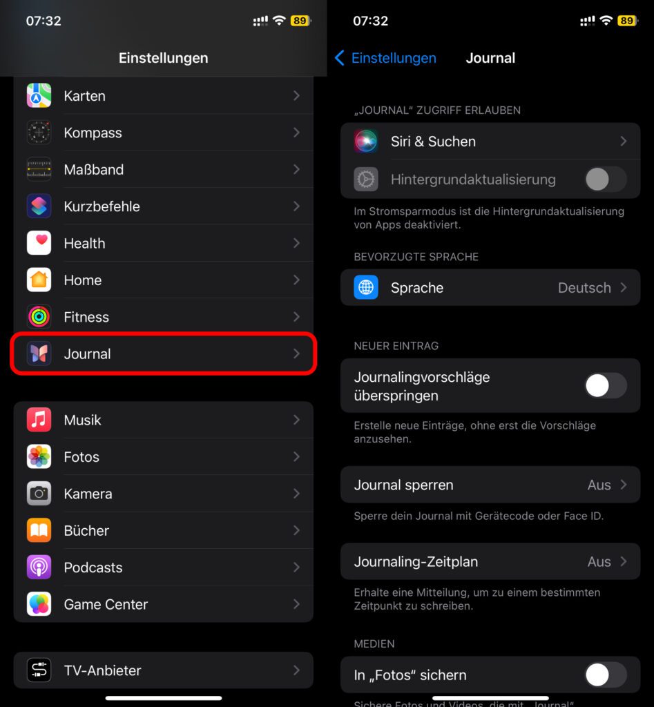 - 1 Die Journal-Optionen in den iOS-Einstellungen erklärt