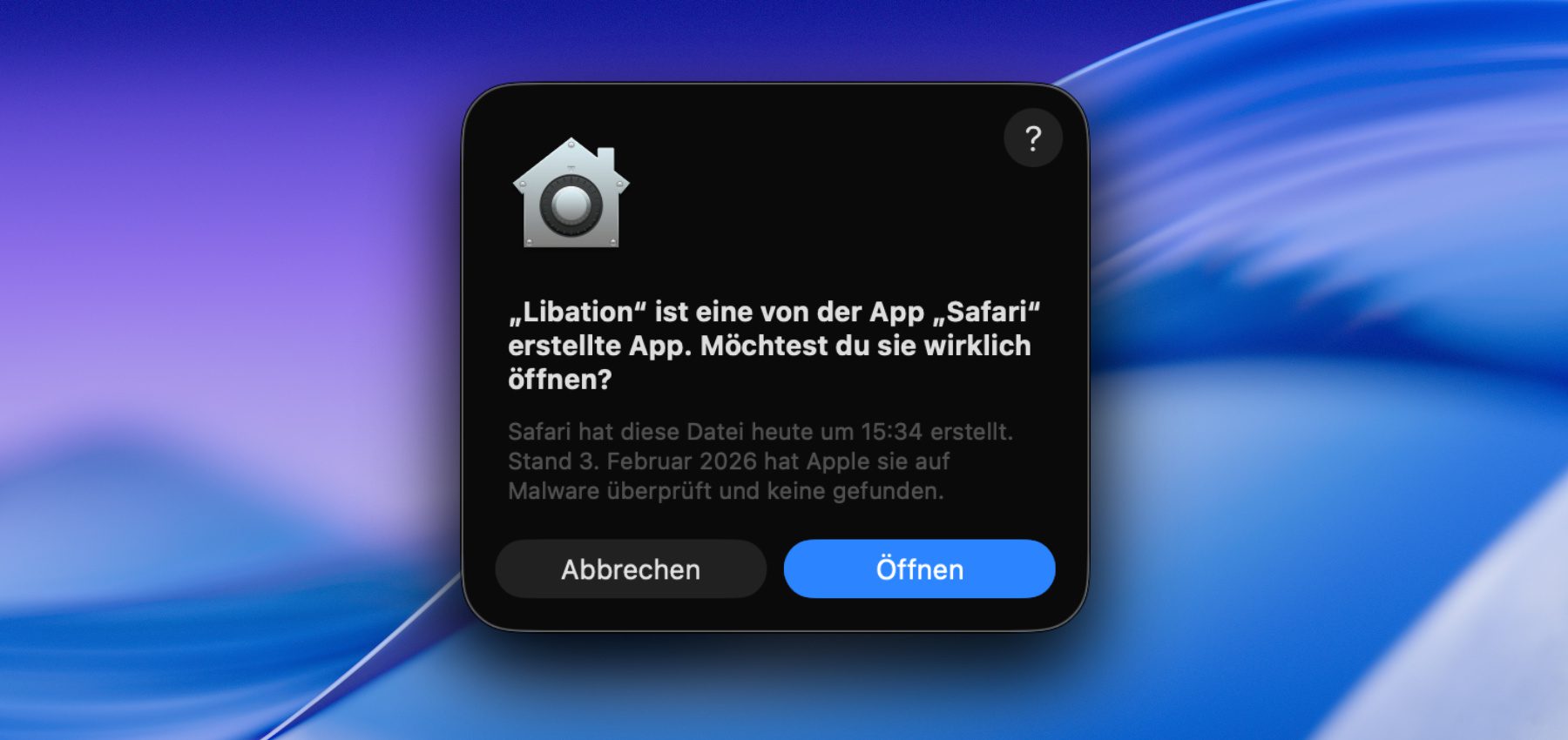 Beim ersten Öffnen wirft Apple einem wieder mal eine Warnung entgegen. Aber die kann man einfach mit einem Klick auf den Öffnen-Button ignorieren.