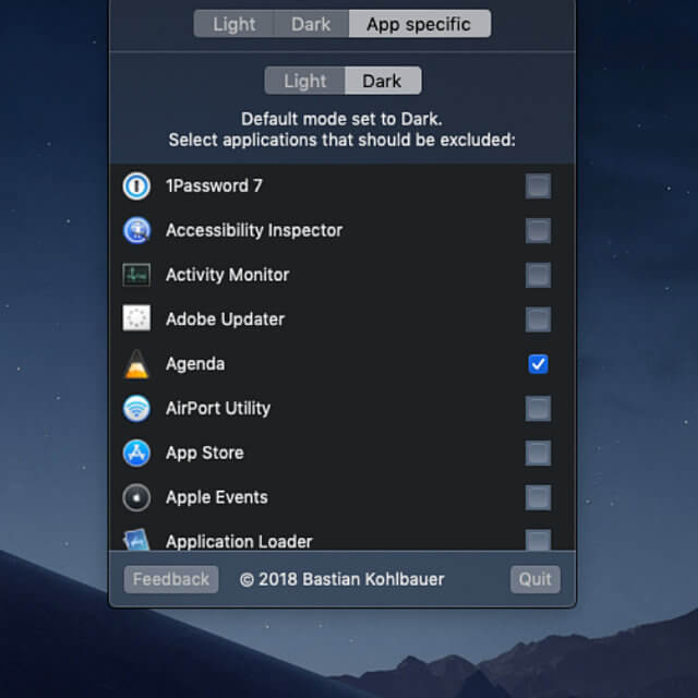 Mojave Dark Mode individuell zuteilen - LightsOff App