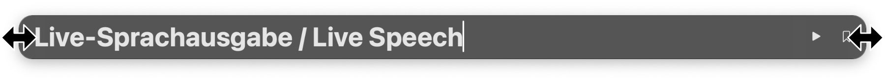 Um die gesicherten Texte über die Lautsprecher, in Telefonaten oder füre die verbundenen Kontakte hörbar in einem FaceTime-Telefonat sprechen zu lassen, klickt ihr im Live Speech Eingabefeld rechts das Lesezeichen-Symbol an. Dann wählt ihr den gewünschten Satz aus und klickt auf Play / die Eingabetaste. Wollt ihr dem ausgewählten Text noch etwas hinzufügen, ist das möglich. Klickt ihn an, tippt die Ergänzung ein, und wählt dann erst das Play-Symbol. Statt diesem könnt ihr auch hier die Eingabetaste (Enter) betätigen.