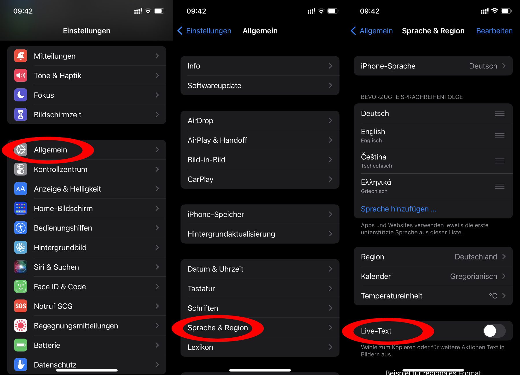 - Deaktiviert ganz unten den „Live Text“-Schieberegler