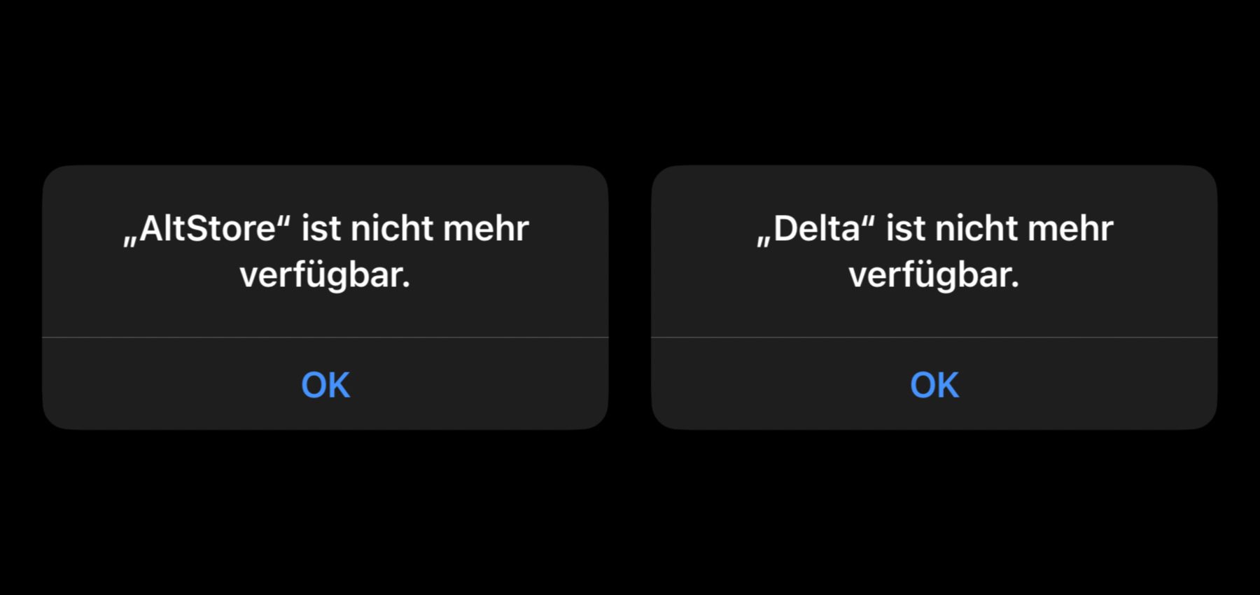 Habt ihr die kostenlose Version des AltStore App-Marktplatzes auf eurem iPhone installiert? Dann kann es vorkommen, dass ihr beim Versuch, die App zu öffnen, die Fehlermeldung „AltStore ist nicht mehr verfügbar“ bekommt. Auch eine darüber installierte App wird dann nicht mehr geöffnet. Etwa erscheint dann für die Delta App die Meldung „Delta ist nicht mehr verfügbar“. Warum ist das so? Und was kann man dagegen tun? Hier findet ihr alle Infos!