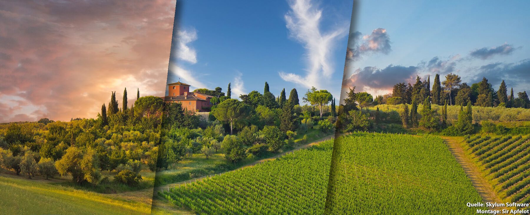 Das Ersetzen des fotografierten Himmels durch eine wolkenlose Ebene, einen schönen Sonnenuntergang, ein nur leicht mit Wolken gespicktes Blau oder einen Gewitterhimmel – all das sind Möglichkeiten, um das gemachte Foto näher an die eigene künstlerische Vision heran zu bringen. Mehrere Minuten, oder bei Einsteigern sogar Stunden, kann es dauern, die dafür richtigen Werkzeuge in der Fotobearbeitung-App herauszusuchen und zu nutzen. Werkzeuge für Auswahl, Masken, Überlagerung, Ebenen, Pinsel, Farbkorrektur, und, und, und. Den perfekten Himmel für sein Kunstwerk zu schaffen, das ist damit harte Arbeit.