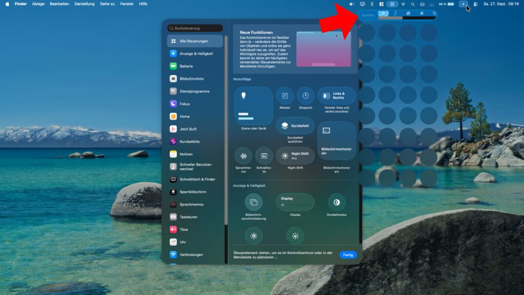 - Das Kontrollzentrum in der Menüleiste (oben rechts auf dem Bildschirm) anklicken