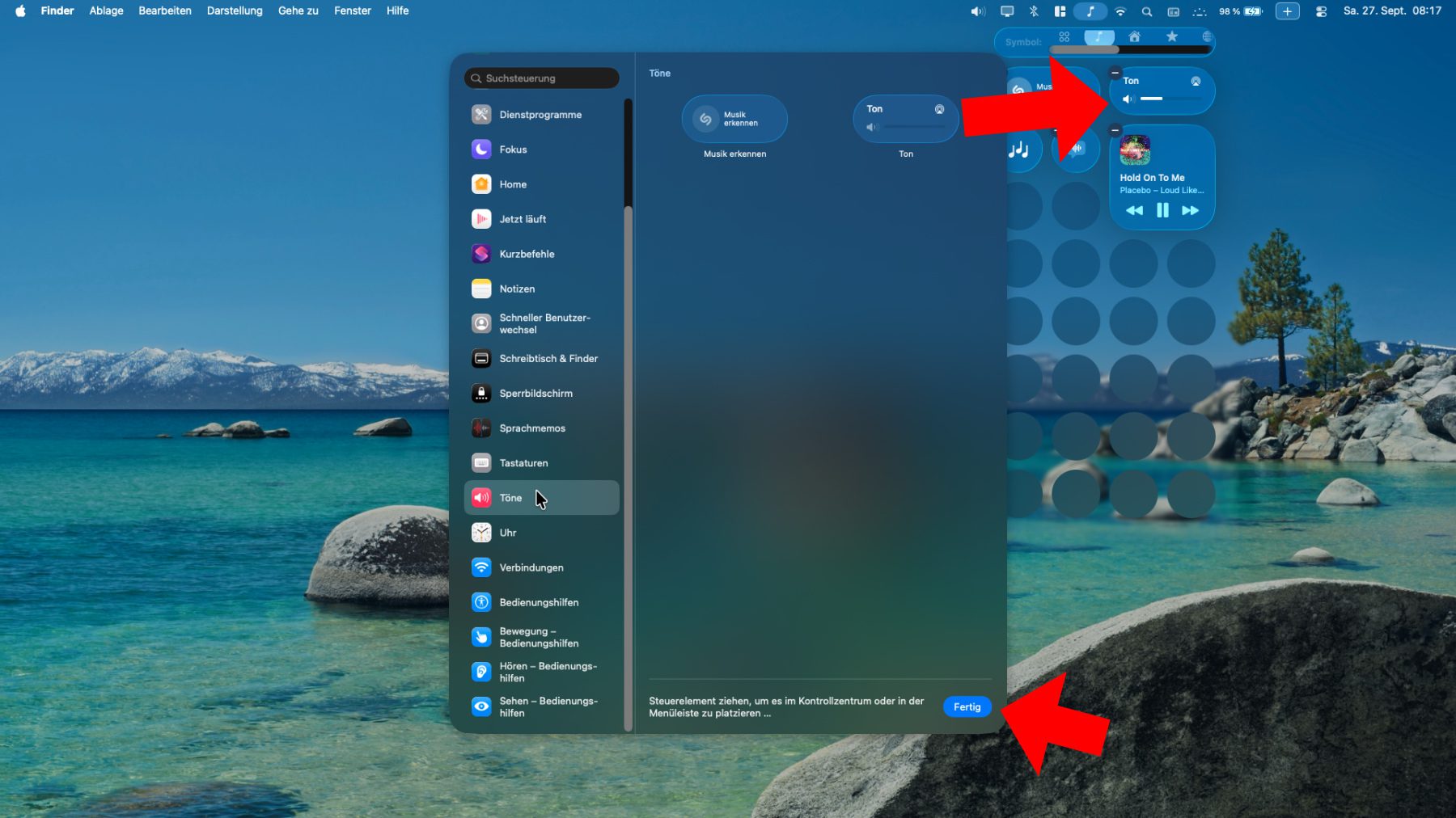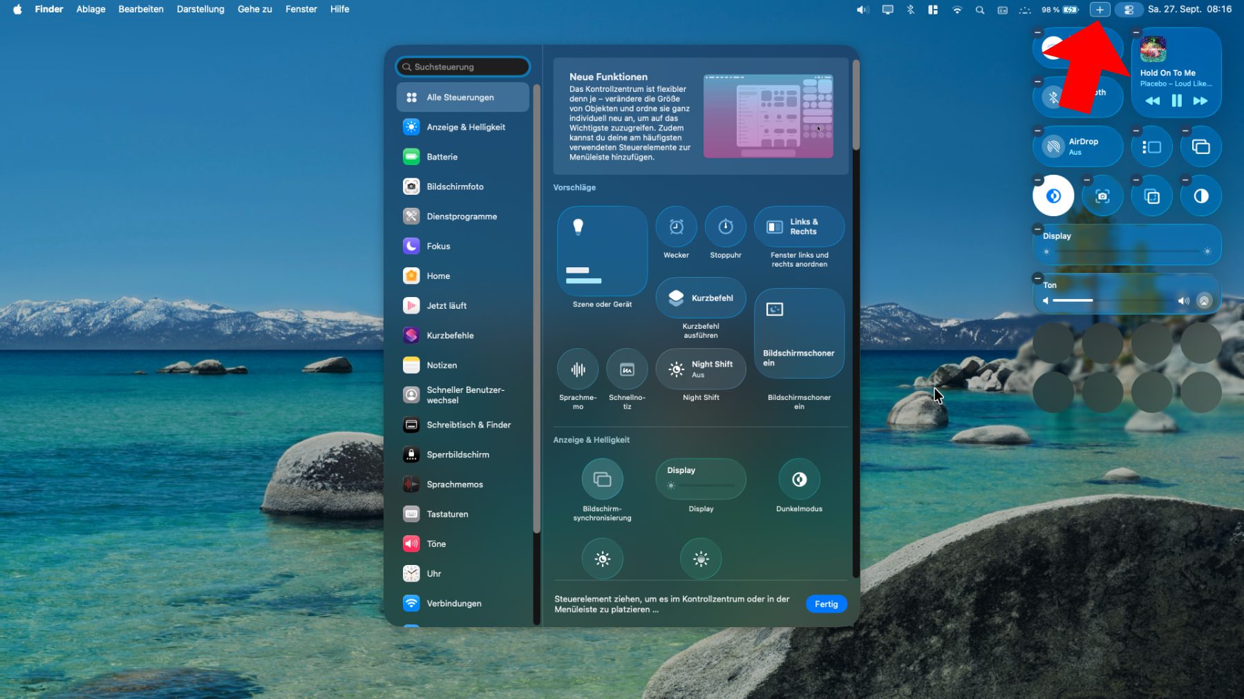 Eigene Audio-, Display-, Home- und andere Steuerung am Mac einrichten