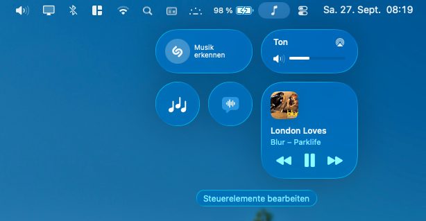 - Das Kontrollzentrum in der Menüleiste (oben rechts auf dem Bildschirm) anklicken