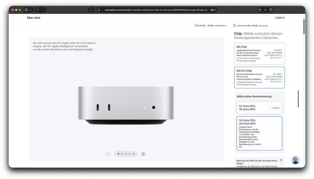 Schauen wir uns als zweites Beispiel deshalb mal den Mac mini an. Auf dessen Seite wählt man jetzt nach und nach diese Elemente aus: