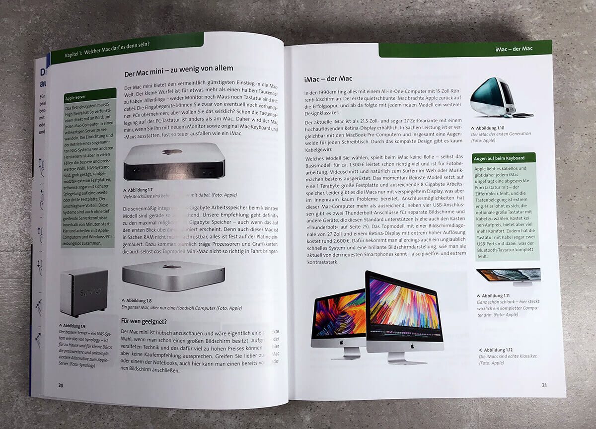 Interessant ist auch, dass der iMac Pro, der ja erst im Dezember 2017 rauskommen soll, hier beim Mac Pro als Alternative erwähnt wird. Damit ist das Buch schon recht aktuell, was den Stand der Macs anbelangt.