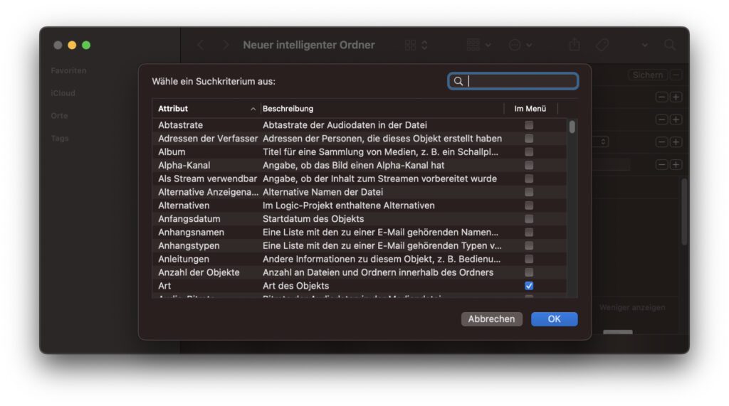 Suchparameter für den intelligenten Mac-Ordner auswählen