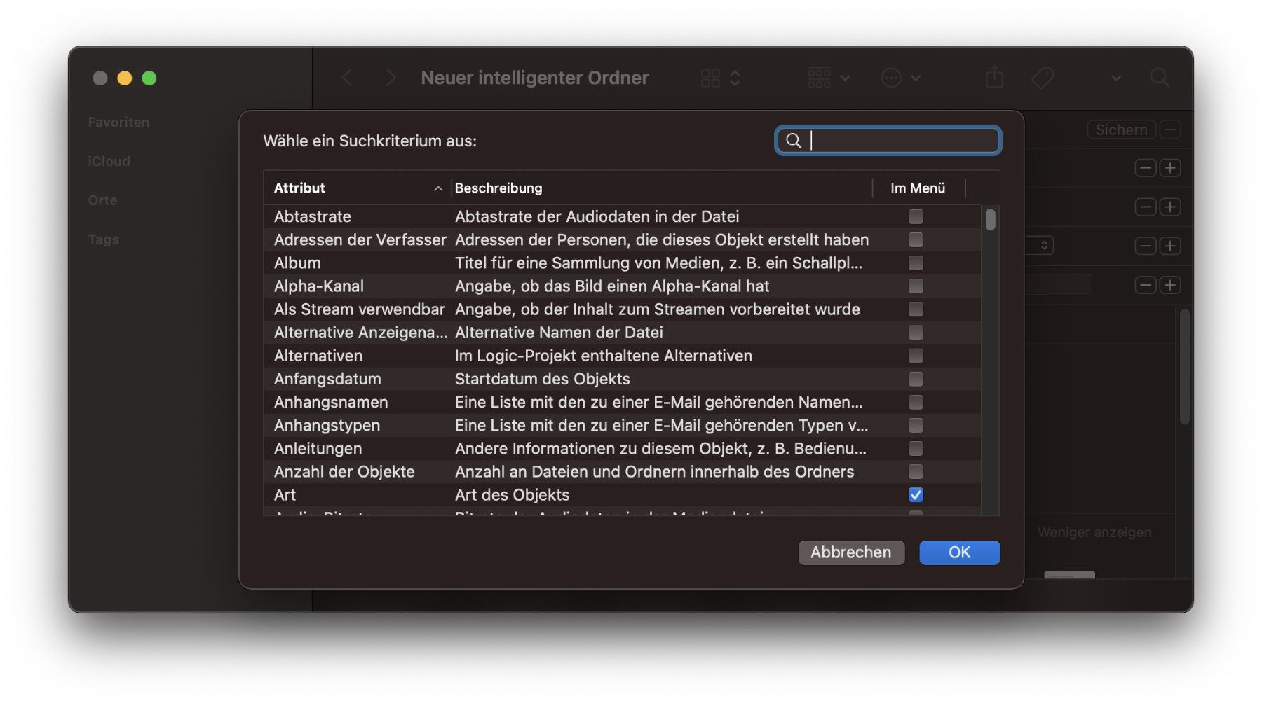 Suchparameter für den intelligenten Mac-Ordner auswählen