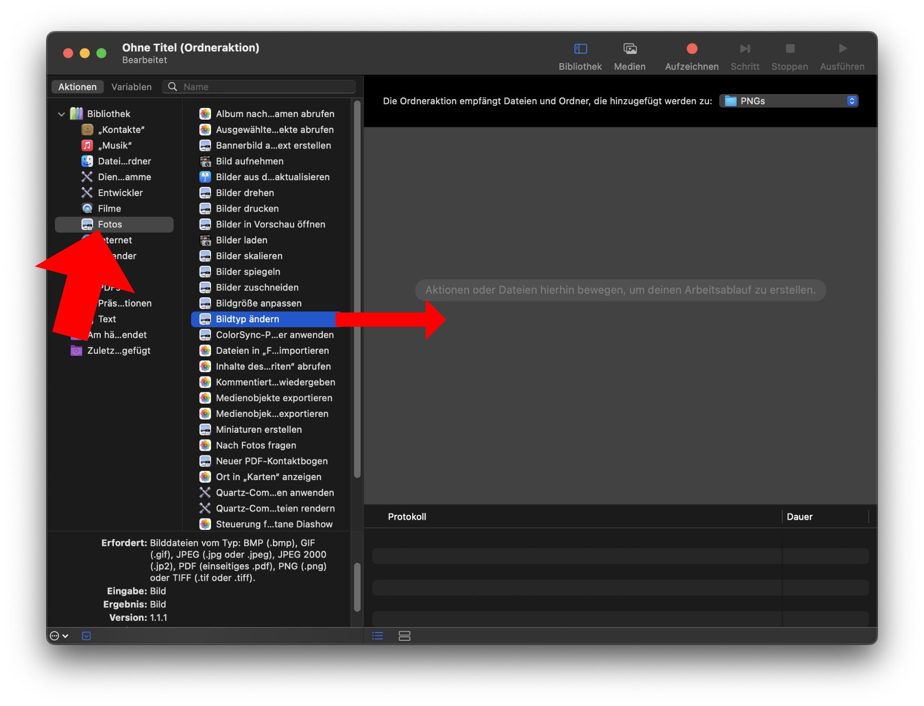 - Von der Spalte rechts daneben die Operation Bildtyp ändern in den rechten Bereich ziehen.