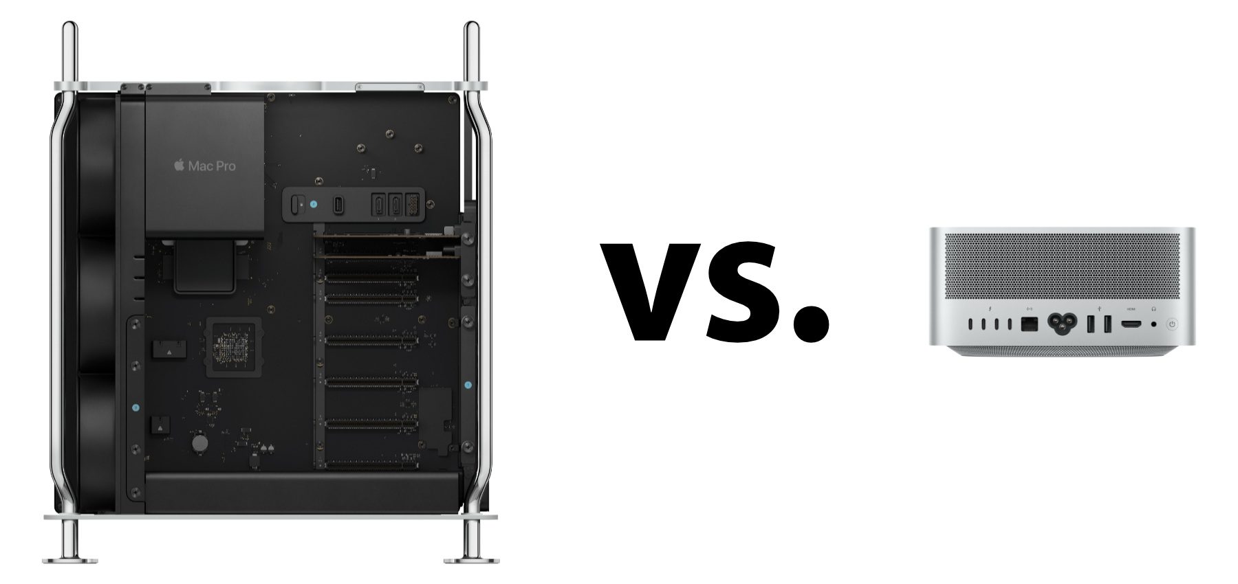 Der Mac Pro wurde im Juni 2023 mit dem M2 Ultra ausgestattet. Der Tower-Computer kann mit bis zu 198 GB RAM bestellt werden und bringt PCIe-Steckplätze als Alleinstellungsmerkmal mit. Der Mac Studio bekam zuletzt im März 2025 ein Hardwareupdate; er wurde mit dem M3 Ultra ausgestattet, nachdem Apple keinen zufriedenstellenden M4 Ultra bauen konnte. Bis zu 512 GB RAM können verbaut werden, und die Speicherbandbreite ist etwas höher als beim M2 Ultra.