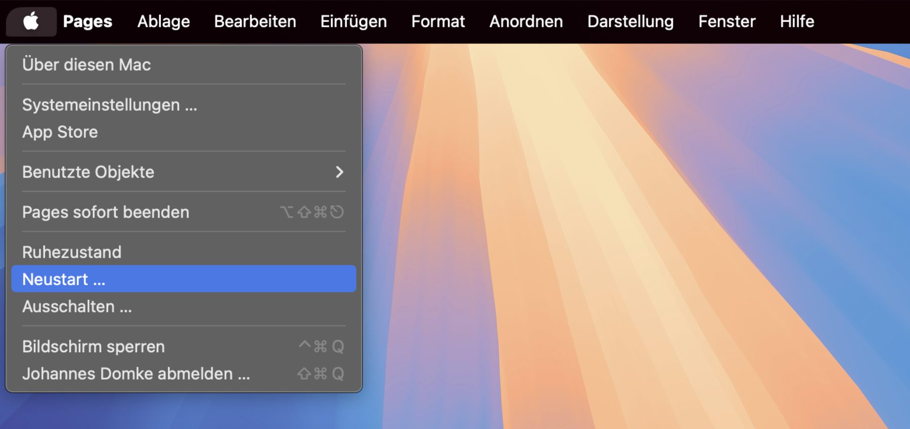 Gehen wir davon aus, dass sich das Nutzungsproblem nicht im abgesicherten Modus gezeigt hat. Dann gilt es, den Mac erst einmal ganz normal neu zu starten. Wurde er einmal aus- und wieder eingeschaltet und macOS im regulären Modus geladen, dann kann man sich anmelden und schauen, ob der Fehler weiterhin auftritt. Tut er das nicht, dann kann man die Sache als erledigt betrachten.