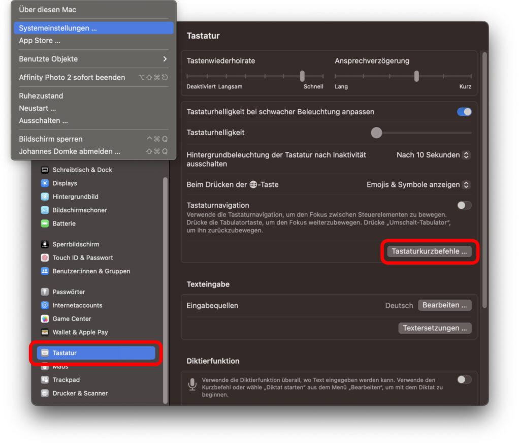 Die Automator App könnt ihr nun schließen. Denn die Tastenkombination zum Öffnen der Dateien aus der Liste der Schnellaktion legt ihr in den Systemeinstellungen von macOS fest. Den Weg dorthin geht ihr je nach verwendeter Version des Betriebssystems auf verschiedenen Wegen:
