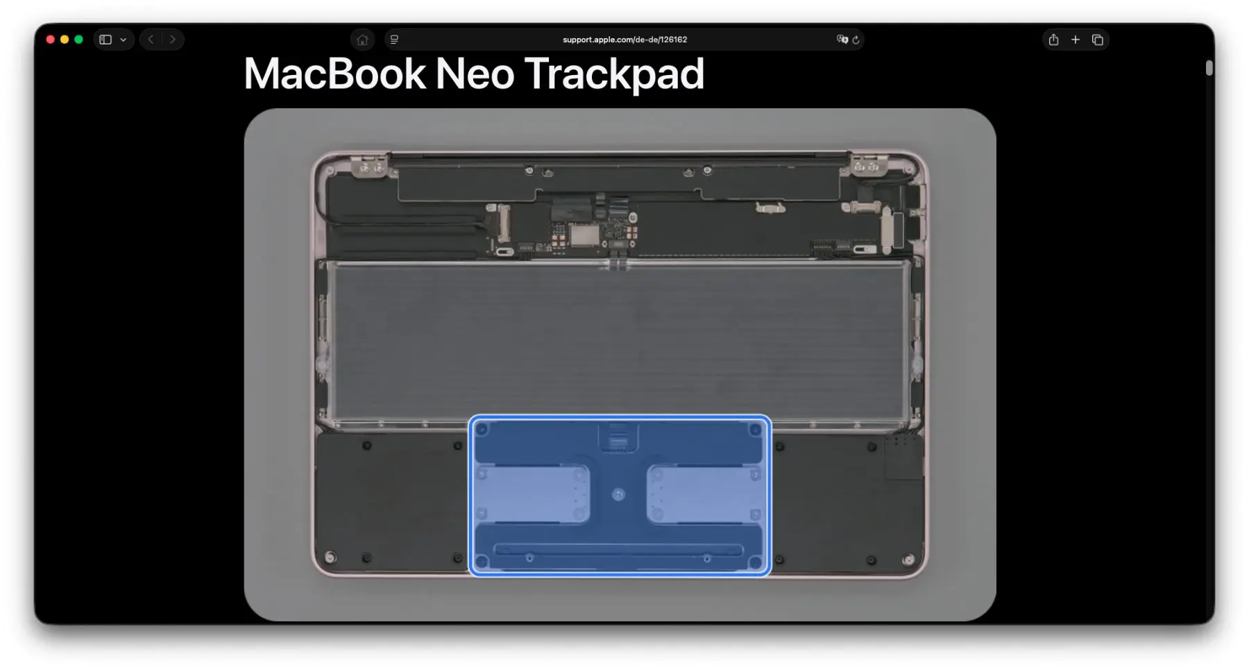 Mittlerweile ist es (zum Glück) zur Gewohnheit geworden, dass für neue Apple-Geräte schon an Tag 1 das jeweilige Reparaturhandbuch zur Verfügung steht. Für das MacBook Neo ist es zwar trotz deutscher URL aktuell nur auf Englisch verfügbar. Jedoch sollte eine Übersetzung bald folgen.