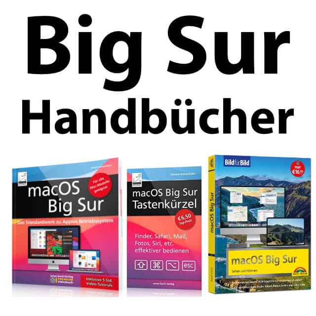 Dieses Buch stammt von Anton Ochsenkühn, der sicherlich nicht nur den Leser/innen dieses Blogs ein Begriff ist. Der Autor für Apple-Anleitungen und -Ratgeber arbeitet seit den 1980er Jahren mit den Produkten aus Cupertino. Das Big Sur Handbuch „macOS Big Sur - Das Standardwerk für Ein- und Umsteiger“ ist im amac-buch Verlag erschienen und bietet nicht nur 570 Seiten voller Informationen, Anleitungen und Screenshots, sondern auch 5 Stunden Video-Tutorials. Die Videos können vom iPhone oder iPad aus per QR-Code aufgerufen werden. Als Taschenbuch kostet das Kompendium 34,95 Euro; als Kindle-eBook nur 9,99 Euro. Zur Amazon-Produktseite kommt ihr mit diesem Link.