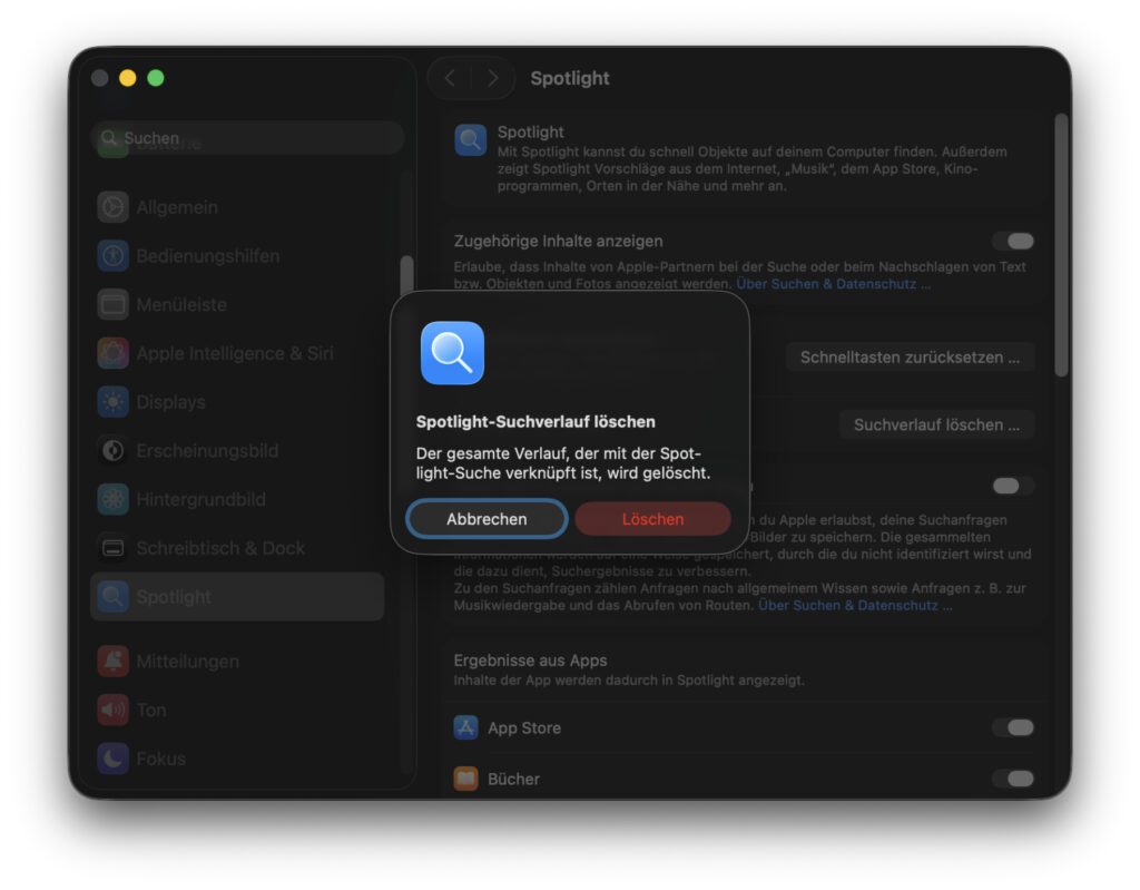 Unter macOS Tahoe den Spotlight Suchverlauf löschen