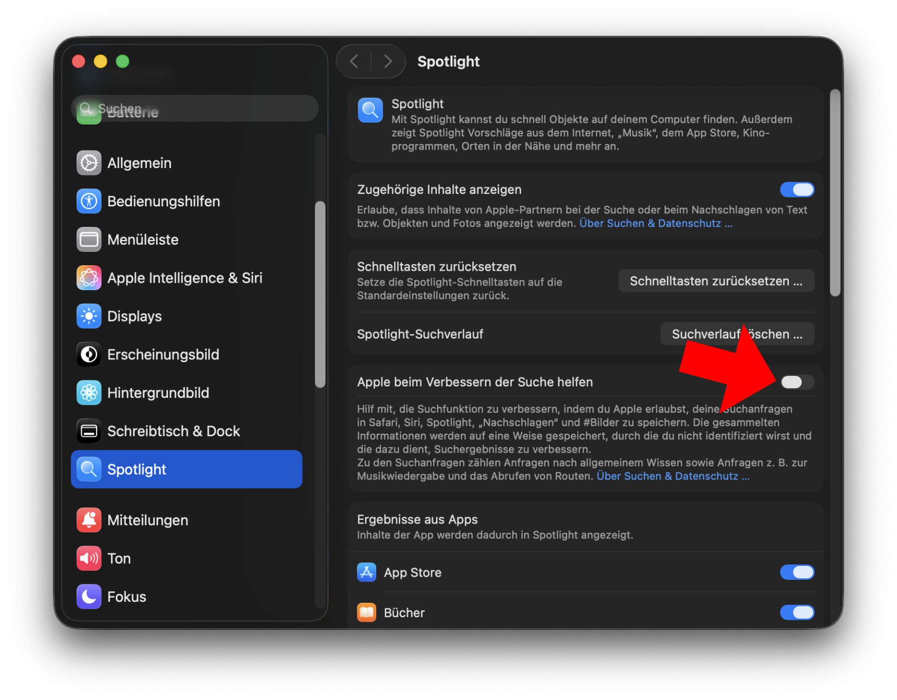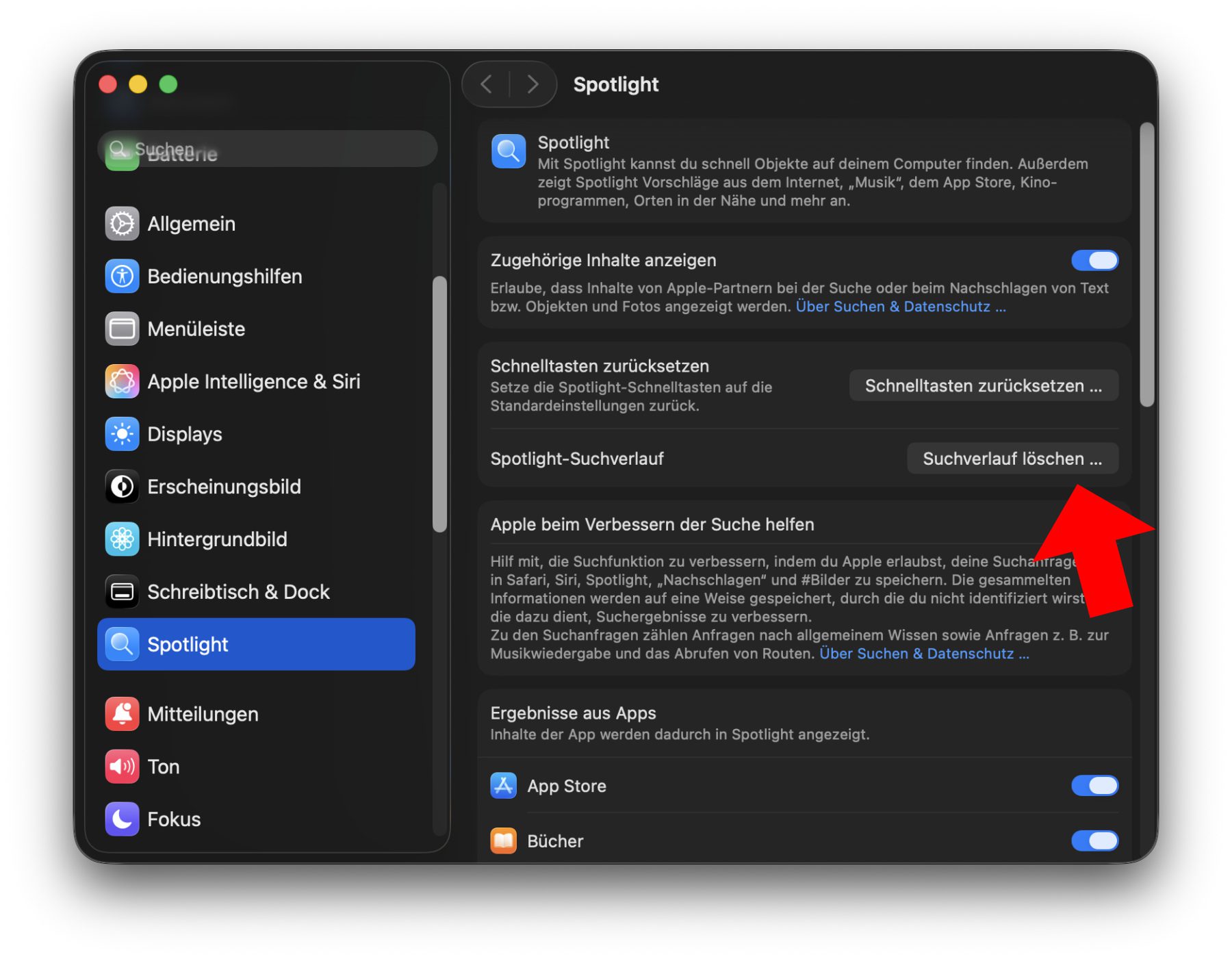 Unter macOS Tahoe den Spotlight Suchverlauf löschen