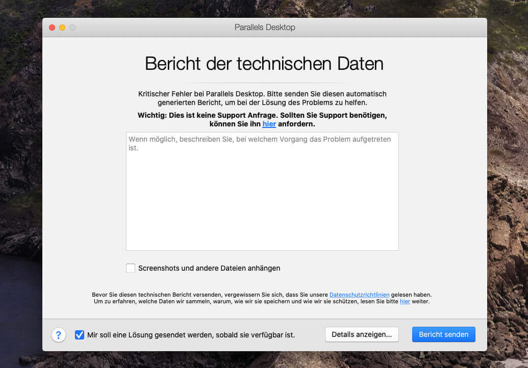 Parallels Desktop stürzt weiterhin ab