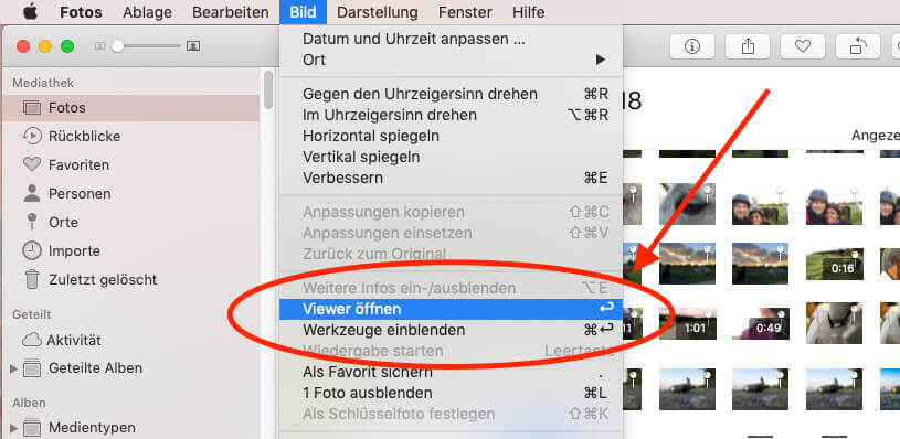 Nach einem kurzen Blick ins Menü der Fotos-App zeigt sich, dass man nun statt der Space-Taste die Enter-Taste (auch Return genannt) verwenden muss. Ich bin nicht der einzige, der diese Änderung ziemlich bescheuert findet.Im Apple-Support-Forum gibt es einen Thread, in dem auch andere Leute sich über diese Änderung beschweren.