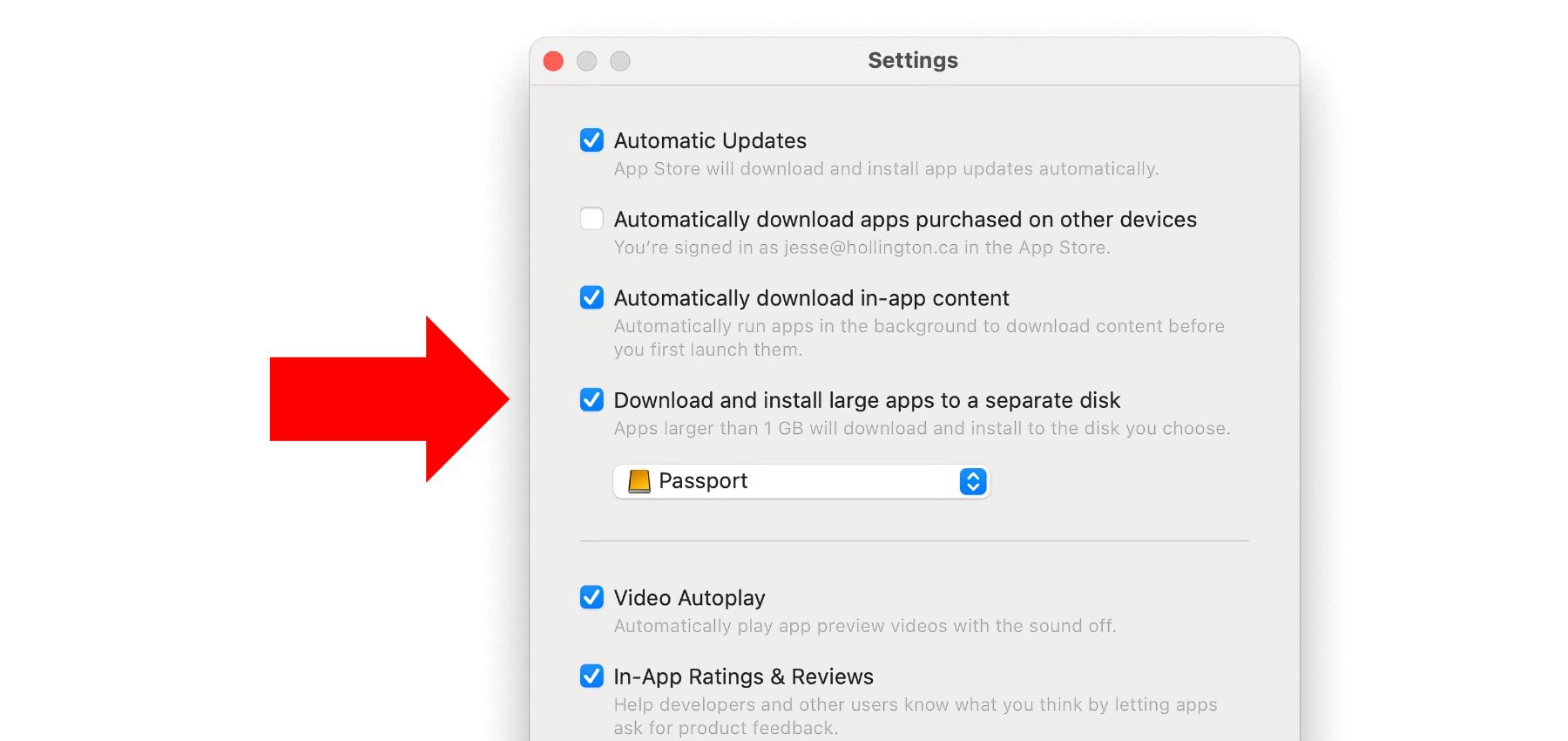 Wie Jesse Hollington bei iDrop News aufzeigt, bringt die aktuelle Beta-Version von macOS 15 Sequoia in den Einstellungen des Mac App Store eine neue Option mit. Das Häkchen für diese Option ist standardmäßig deaktiviert, sodass man für ihre Auswahl aktiv in den Einstellungen danach suchen und das Häkchen setzen muss. Einmal gesetzt, sorgt es dafür, dass Apps mit mehr als 1 GB Größe automatisch auf einer externen Festplatte installiert werden. Dafür erscheint zudem ein Dropdown-Menü, in dem das richtige externe Speichermedium ausgewählt werden kann. Bei der Installation wird auf dem ausgewählten Ziel ein neuer Programme-Ordner angelegt.