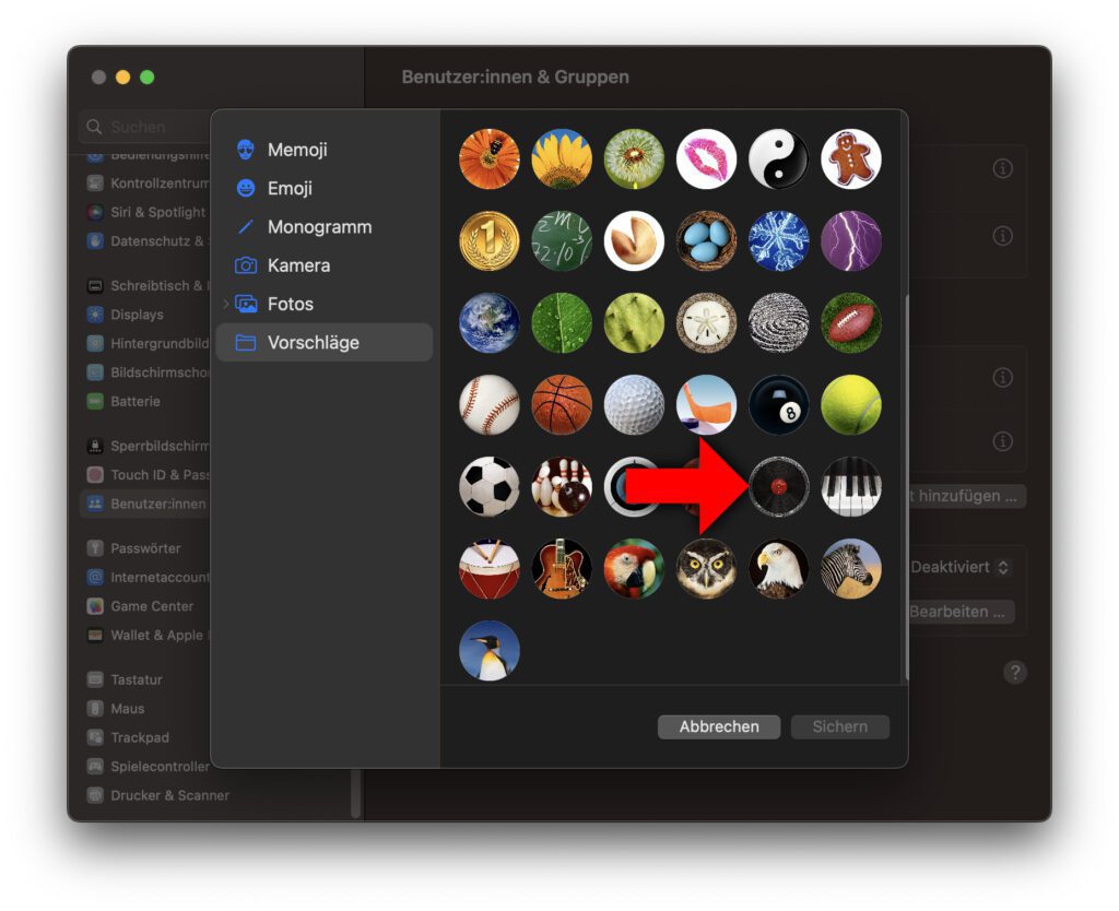 Wie ihr seht, seht ihr noch nichts. Aber diesen Profilbildvorschlag kann man auf der Mac-Festplatte als Datei aufrufen und dann vergrößern. Die Grafikdatei bzw. die Verknüpfung zu ihr versteckt sich hinter diesem Pfad: ~/Library/User Pictures/Instruments. Dort öffnet ihr einfach die Datei Turntable.heic und schon könnt ihr an die Beschriftung heranzoomen.