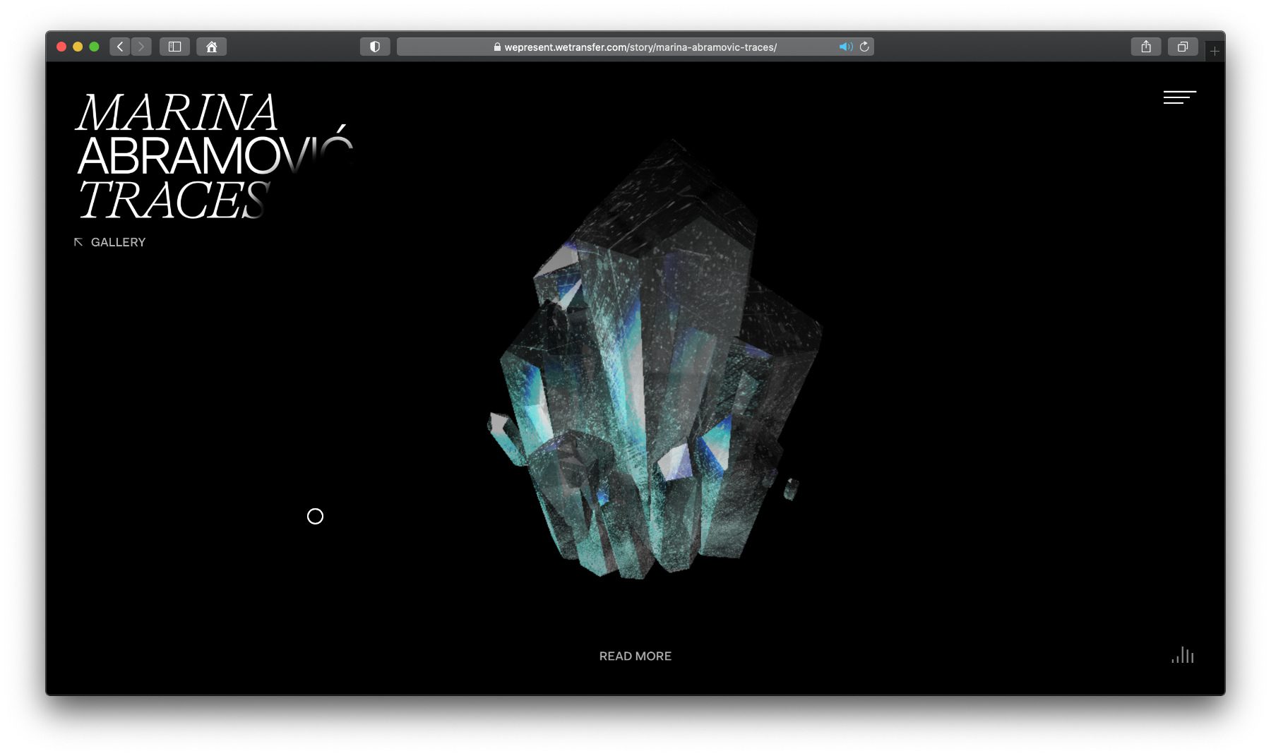Letztens bin ich durch einen Link, den mir eine Bekannte schickte, auf ein interessantes digitales Kunstprojekt aufmerksam geworden. Die interaktive Ausstellung, die ihr euch direkt im Webbrowser anschauen könnt, trägt den Namen „Marina Abramović presents Traces“ und ist ein Angebot von WeTransfer. Die Seite bietet nicht nur die Möglichkeit für alle Nutzer/innen an, große Dateien über einen Cloud-Speicher an andere zu schicken, es gibt auch einen künstlerischen Ansatz. Und diesen könnt ihr unter anderem mit „Marina Abramović presents Traces“ entdecken. Dort könnt ihr einen Quarz-Kristall, einen Mars-Stein und mehr per Maus oder Trackpad bewegen.