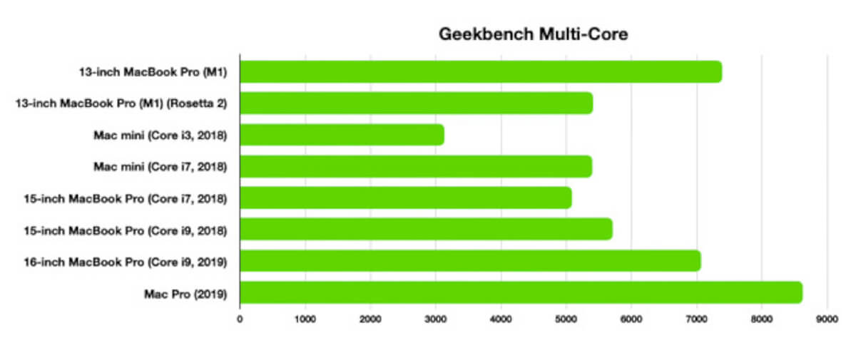 Die Ergebnisse von Geekbench sind also interessant, um einen Vergleich der aktuellen Apple Silicon Macs mit den Intel-Macs vorzunehmen.