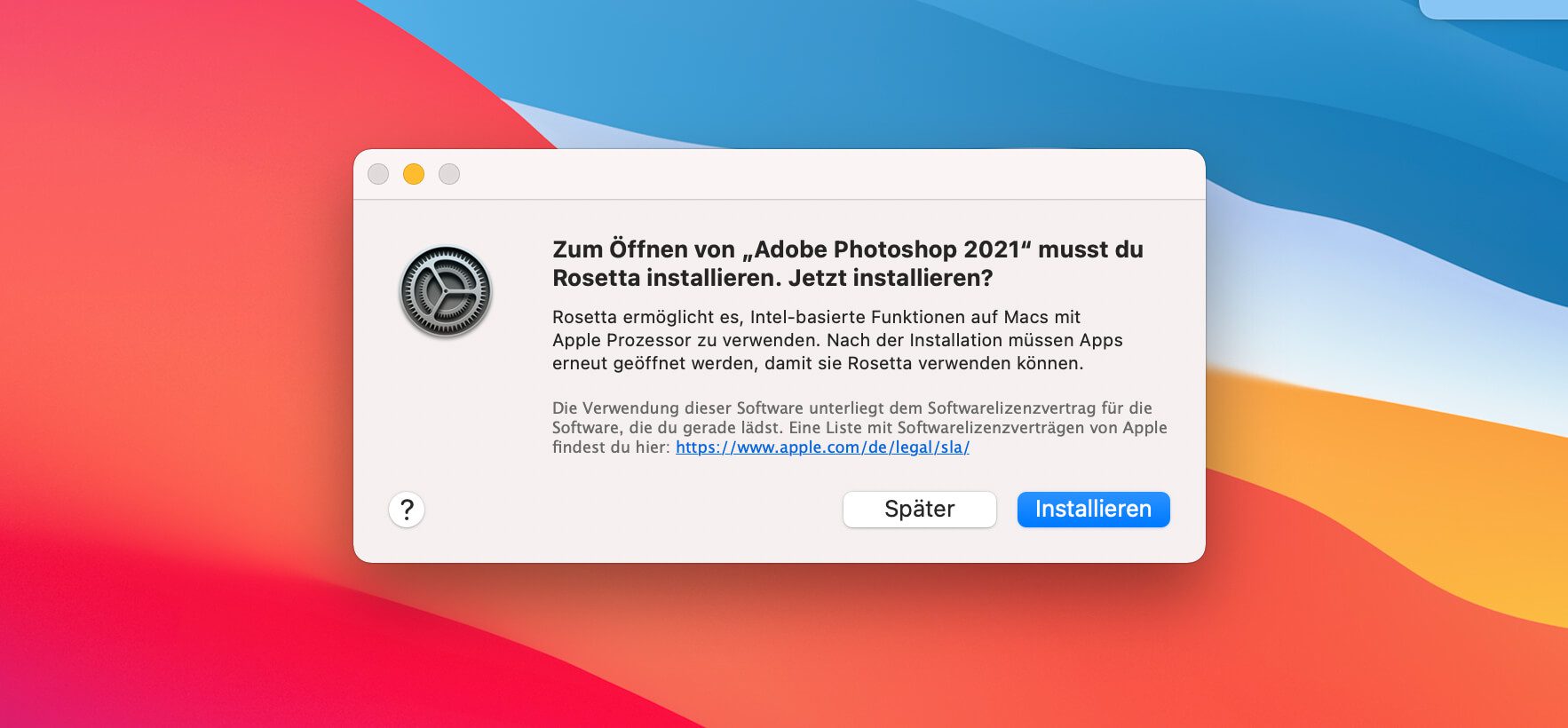 Man sieht: Der M1-Chip ist zwar flott, aber er kann hier seine Leistung nicht ausspielen, da Photoshop erst 2021 in einer Version kommt, die für Apple Silicon Macs optimiert ist. In der Übergangszeit „übersetzt“ quasi Rosetta das Programm für die Apple CPU, was natürlich Rechenzeit kostet.