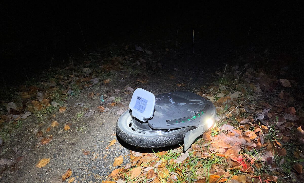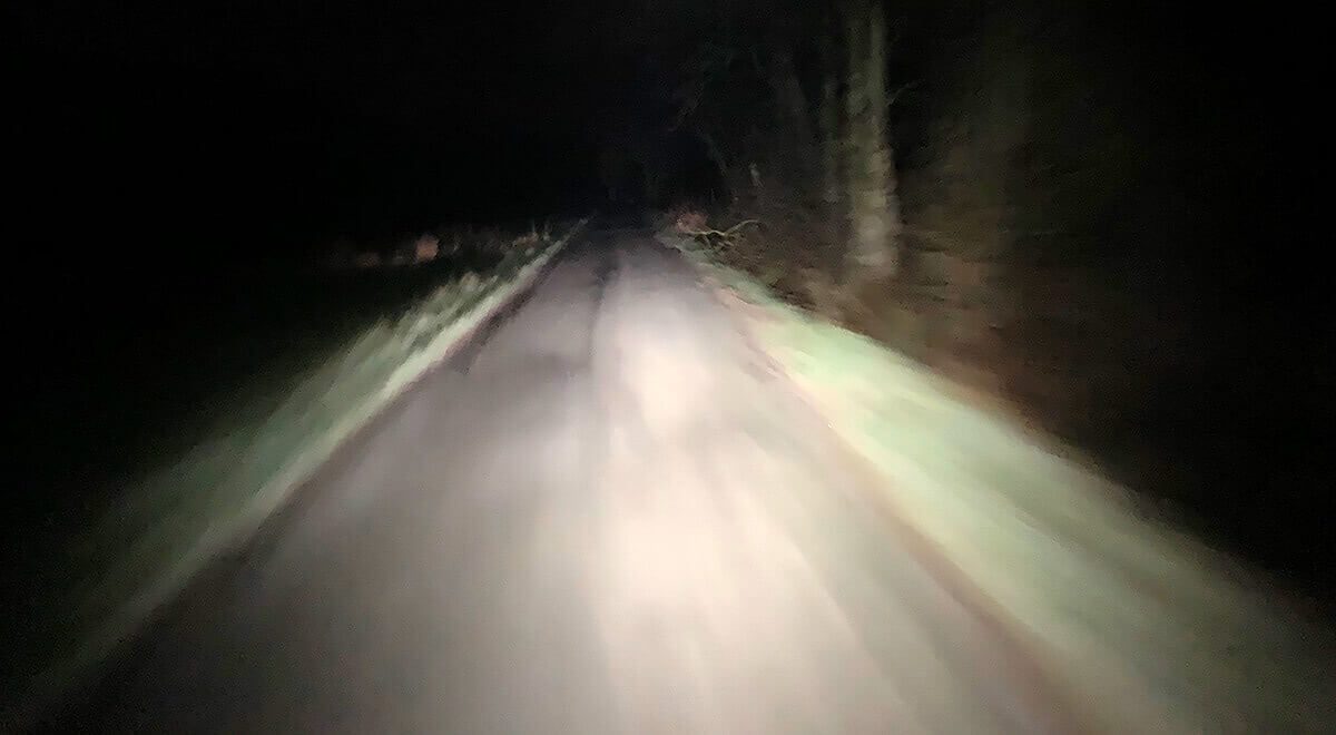 Die Dunkelheit war eigentlich kein Thema. Das eingebaute Licht des Einrads hätte sicher nicht ausgereicht, um zügig zu fahren, aber mit einer starken Stirnlampe war es kein Problem. Mit der Stirnlamoe hat man den Vorteil, das man "verdächtige" Stellen auf dem Weg mit dem Licht verfolgen kann, um sie näher zu betrachten. Das eingebaute Licht im EUC ist einfach zu nah am Boden und reicht auch nicht weit genug, wenn man mit 20 km/h in der Dunkelheit fährt.