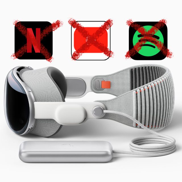 Denn nun haben kurz vor der Vorbestellphase, die heute startet, die drei größten digitalen Medienanbieter eine App-Unterstützung der Vision Pro abgesagt. Das heißt, dass ein einfaches Streamen von Netflix-Inhalten, YouTube-Videos und Spotify-Angeboten nicht möglich ist. Anstatt einfach eine App öffnen zu können muss man Safari oder einen anderen Browser öffnen, sich dort anmelden oder auf die Erinnerungsfunktion seit der letzten Anmeldung setzen sowie sich dann auf der jeweiligen Webseite umsehen.