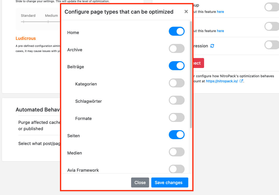 Ich gehe dann in der Regel noch auf die Einstellungen, in welchen ich auswähle, welche Seiten-Typen von WordPress überhaupt von NitroPack behandelt werden sollen. Dort wähle ich meistens Home, Pages und Posts und schalte alle anderen Arten ab. Das spart Seitenaufrufe und diese sind wichtig für die Abrechnung. Und damit kommen wir zu dem Thema, das sicher einige Leute abschrecken wird.