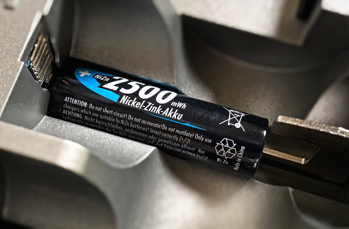 Der zweite – elegantere – Weg ist die Umstellung auf eine andere Akku-Technik – nämlich auf NiZn-Akkus. Diese Nickel-Zink-Akkumulatoren haben eine Zellspannung von 1,6 Volt und werden damit nicht als leere Batterie erkannt, sondern wirken auf die Elektronik wie eine sehr gut gefüllte Batterie.