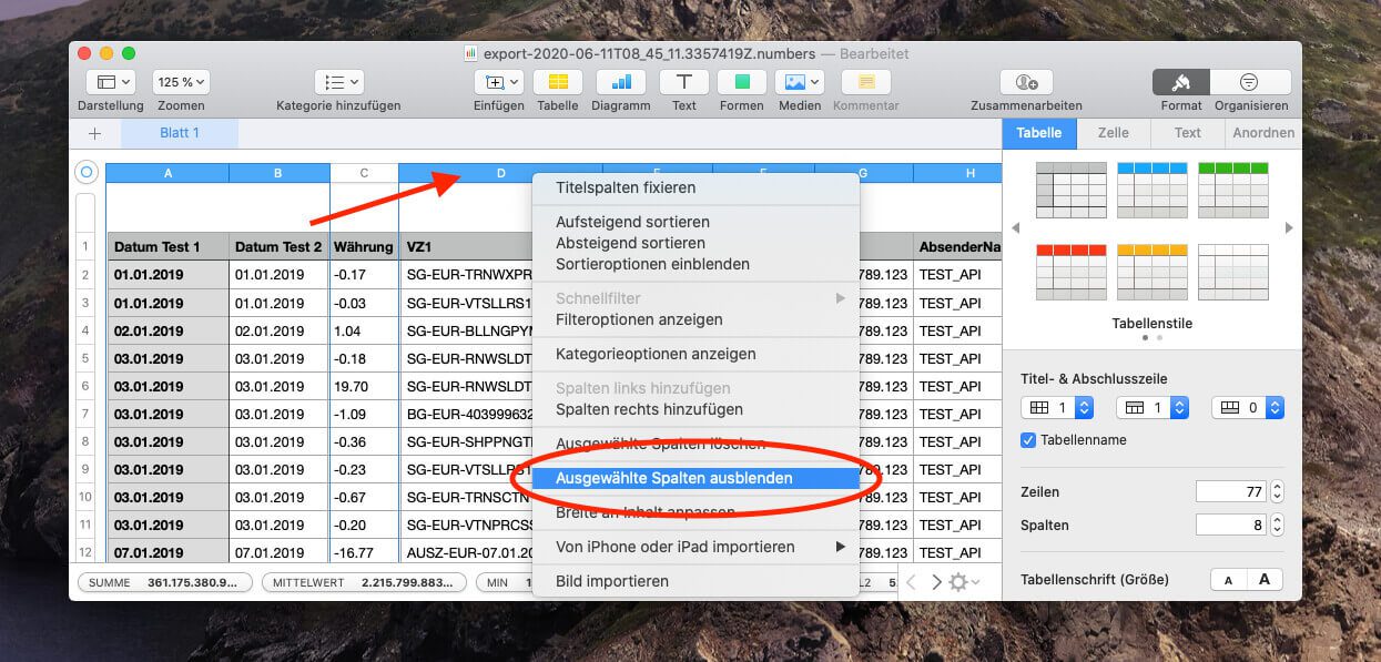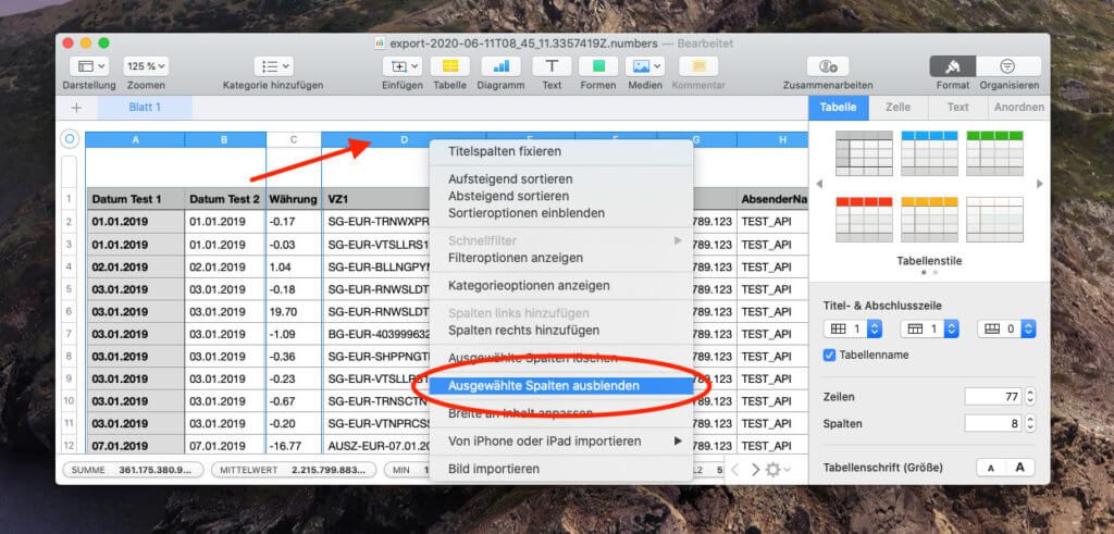 Wenn alles geklappt hat, dürfte das Suchen und Ersetzen nur die eine Spalte betroffen haben. In meinem Fall hat alles funktioniert. Ich habe die Sache an meinem MacBook Pro unter macOS Catalina mit Numbers 10.0 erledigt. Es kann aber sein, dass die Menüpunkte in anderen macOS Versionen oder anderen Numbers Versionen nicht genauso aussehen, wie in meinen Screenshots.