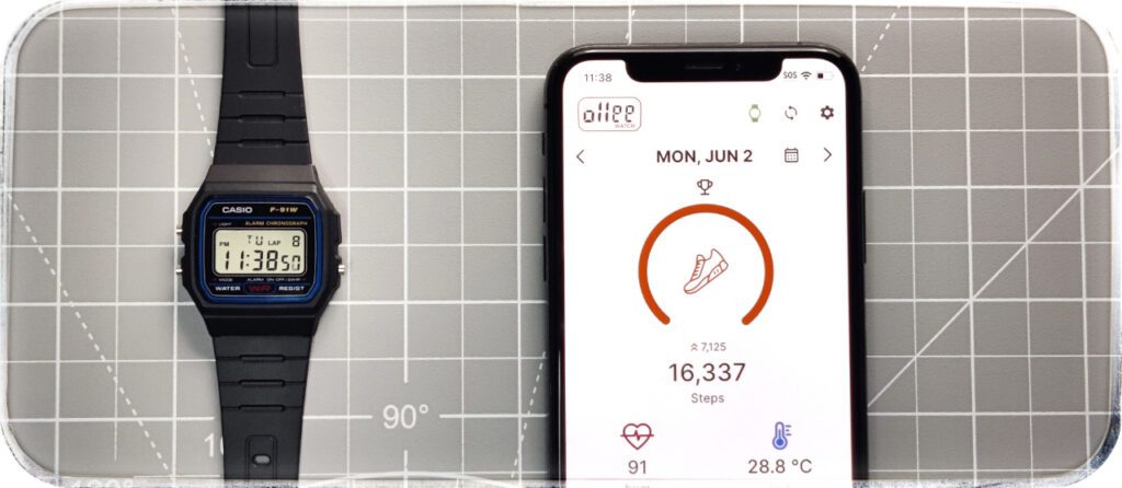 Für alle, die gern eine Uhr mit smarten Funktionen nutzen, aber keinen Apple-Watch-Klotz herumtragen wollen, gibt es eine Lösung – vor allem für Fans klassischer Casio-Armbanduhren. Diese Lösung heißt Ollee Watch, und es ist ein Modul, mit dem man u. a. die klassische Casio F-91W mit NFC ausstatten, als Schrittzähler nutzen sowie mit dem Smartphone koppeln kann.