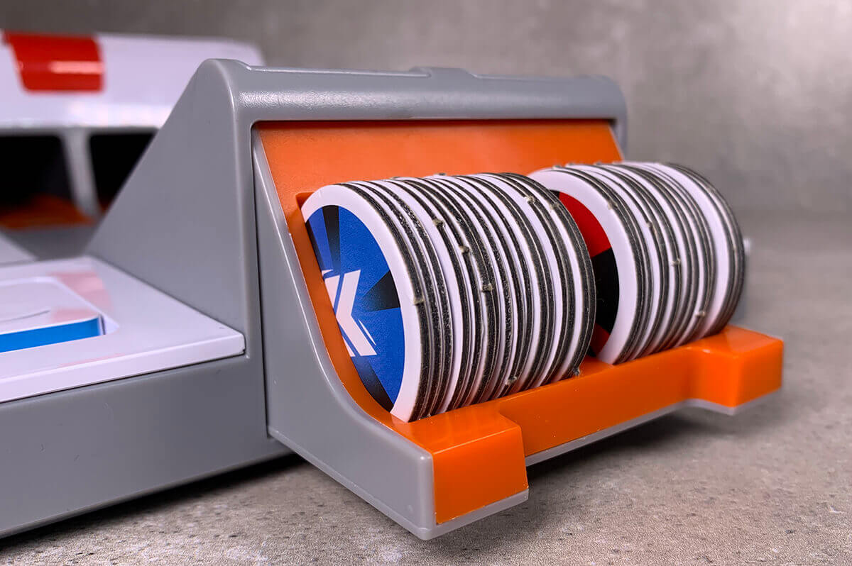 Das Spiel an sich ist nicht schlecht gemacht und die „Abschussrampe“ für die Fahrzeuge ist ein nettes Gimmick. Das Spiel selbst – und vor allem das Weiterspielen im Tablet – bringt auch noch über Tage und Wochen eine Menge Spaß, wenn dann das aus meiner Sicht einzige Manko nicht wäre: Die reine Steuerung mit den Tokens!