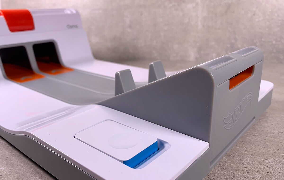 Hat man das Spielfeld aufgebaut, die Apps installiert, das Profil angelegt, dann stellt man das Hot Wheels Rennauto seiner Wahl auf den Startplatz. Natürlich kann man entweder alleine gegen einen Computergegner oder auch gegen einen anderen Menschen fahren.