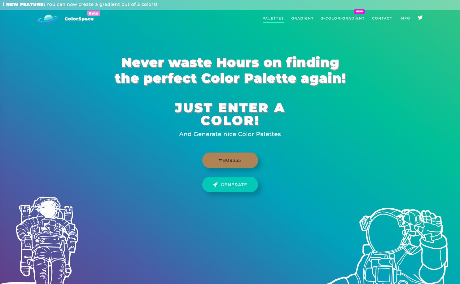 Wer es gerne etwas mehr fancy mag, der findet mit mycolor.space das richtige Tool. Auch hier trägt man seine vorhandene Farbe mit einem Hexcode ein und klickt dann auf „Generate“. Daraufhin erstellt das Tool zahlreiche Farbpaletten, die alle diese eine Farbe und zahlreiche andere, passende Farben enthalten.