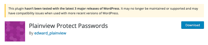Ruft man die Seite des Plugins im WordPress-Repository auf, so erhält man zwar folgende Warnmeldung: