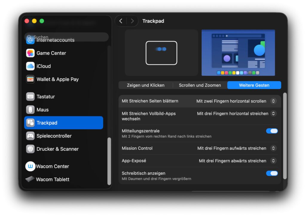Weitere Trackpad-Einstellungen für den Mac möglich