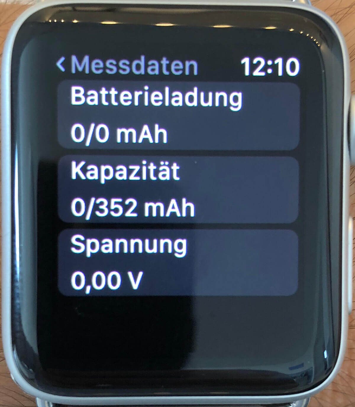Apple Watch Series 3 LTE (38 mm) hat 279 mAh x 3,81 V = 1,07 Wh
