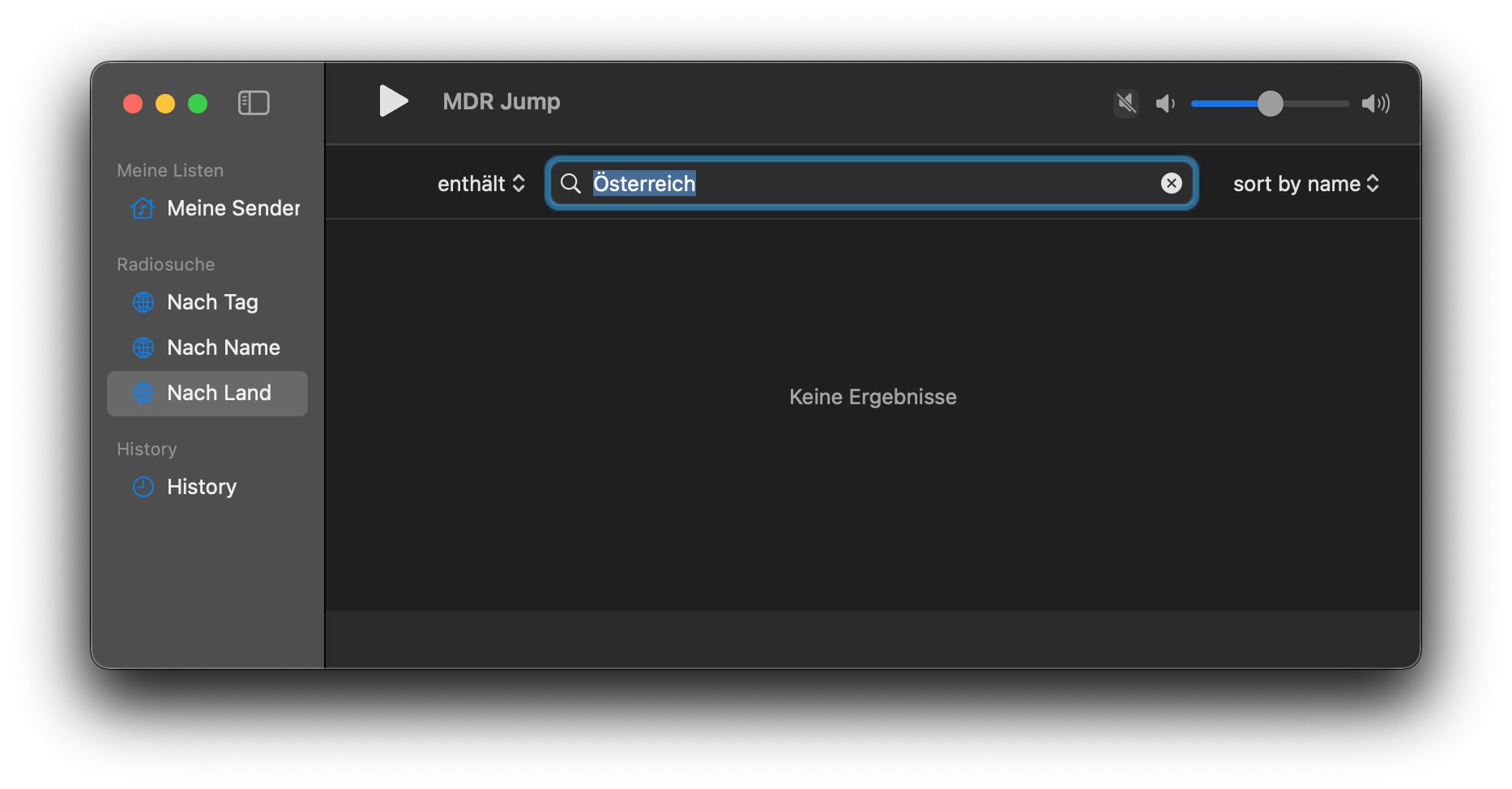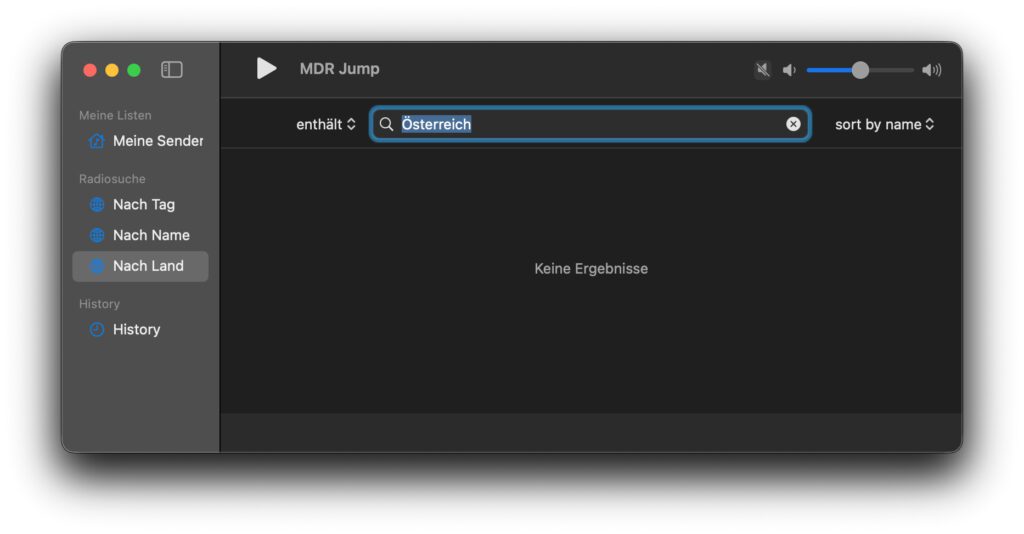Die Radio- bzw. Sendersuche kann nach Tags, nach Namen und nach Ländern unternommen werden. Hier gibt es eine der kleinen Schwächen, die ich im Test der Software ausmachen konnte: Obwohl die Nutzungsoberfläche großteils auf Deutsch übersetzt ist, sollte man mit englischen Begriffen suchen. Etwa im „Nach Land“-Tab mit Germany statt Deutschland, Austria statt Österreich oder Switzerland statt Schweiz.