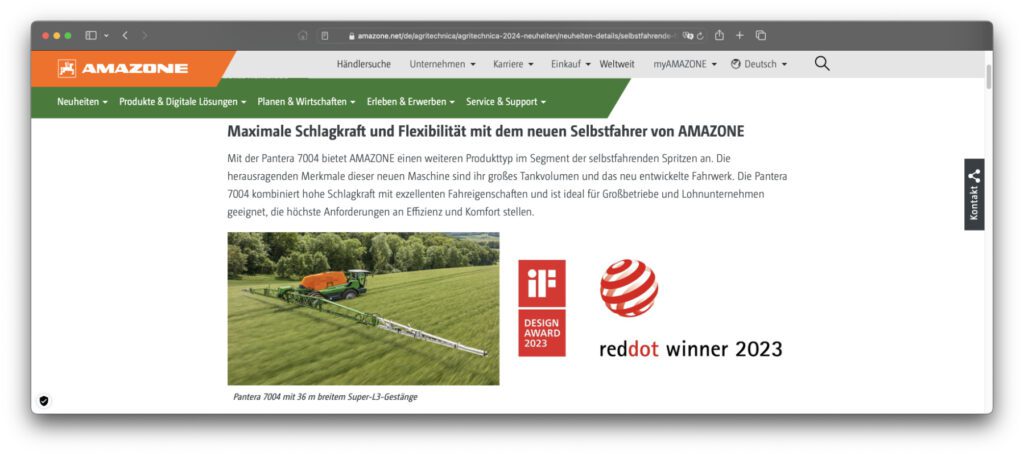 Die Präsentation des Produkts auf der Webseite ist ebenfalls enthalten. Für die Ausstellung als tatsächliches Produkt gelten die gleichen Bedingungen wie beim günstigeren Gewinnpaket. Denn auch hier können zusätzliche Kosten für große Produkte und deren Stellfläche anfallen. Zu große Produkte werden als Video oder Poster gezeigt. In 2023 gewann die Feldspritze „AMAZONE Pantera 7004“ mit 36 Meter Spannweite einen Red Dot. Die Kosten für die Ausstellung vor dem Museum in Essen sind nicht bekannt.