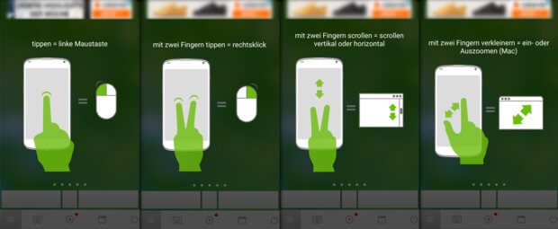 Ist einmal alles verbunden, dann geht es auch schon los. Man kann den Maus-Cursor mit dem Finger auf dem Smartphone-Display steuern. Zudem zeigt Remote Mouse drei Maustasten an. Klick, Doppelklick, Scrollen und Co. lassen sich aber auch durch Gesten mit einem oder zwei Fingern realisieren.