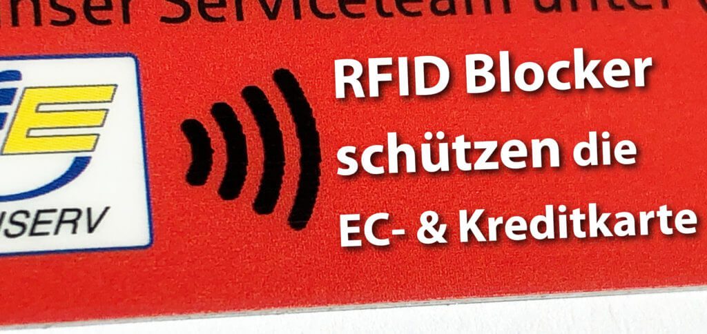 RFID Blocker bzw. NFC Schutzhüllen sind spezielle Kartenhüllen, welche die Signale von Lese- und Buchungsgeräten zurückhalten. Ein heimliches Stehlen von Daten oder Abbuchen von Kleinbeträgen wird damit verhindert. Es gibt sie in verschiedenen Ausführungen, einige sogar mit TÜV-Siegel. Im Folgenden habe ich euch mal ein paar günstige Suchergebnisse von Amazon aufgeführt.