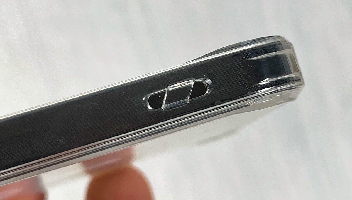 Für Leute, die das iPhone gerade an einem Lanyard tragen, sind im unteren, seitlichen Bereich zwei Löcher eingebaut, durch welche man eine Schlaufe fädeln kann.