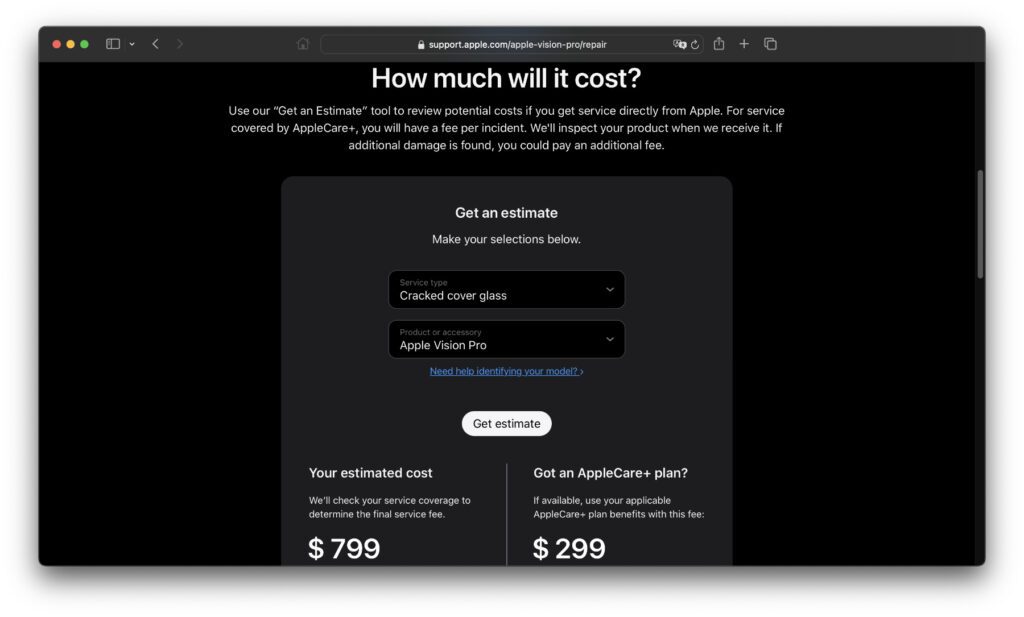 Die Reaktion auf den Glasschaden der Vision Pro scheint von Apple Store zu Apple Store unterschiedlich zu sein. Das ist durchaus nachvollziehbar, da es von Apple bislang keine offizielle Stellungnahme respektive Handlungsanweisung zum Fall gibt. Während in dem einen Store die Vision Pro direkt umgetauscht wurde, sollte im anderen Store der Umtausch bzw. die Reparatur bezahlt werden. Mit AppleCare+ kostet die Reparatur übrigens 299 US-Dollar, ohne diese optionale Versicherung sind es direkt 799 US-Dollar.