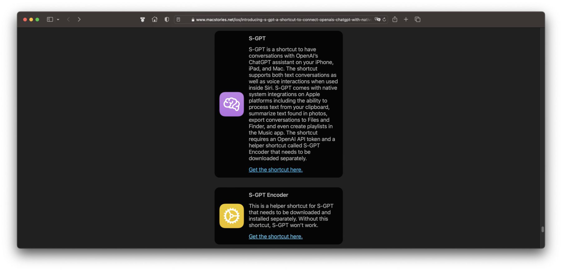 S-GPT Kurzbefehle für iPhone, iPad und Mac herunterladen