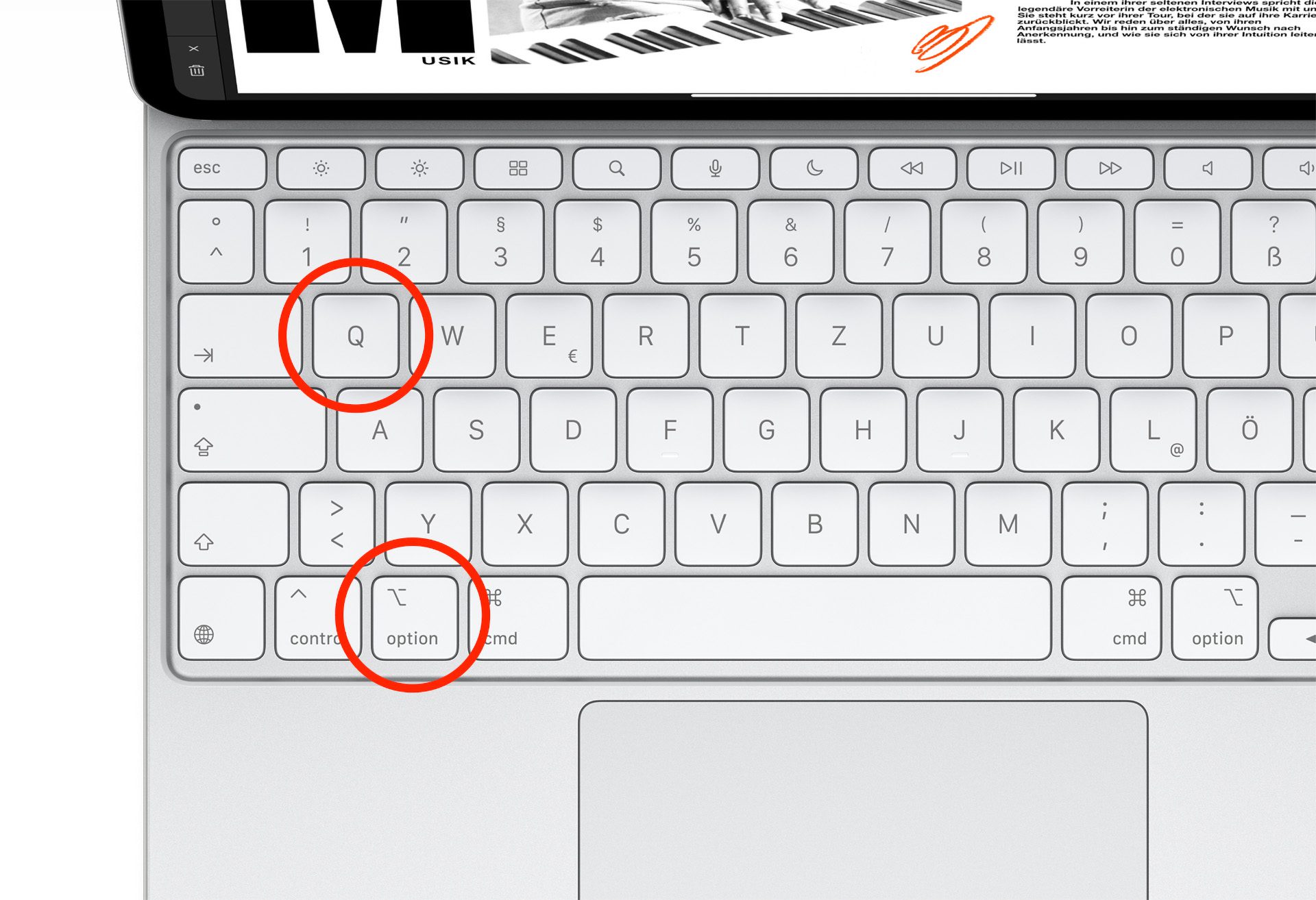 - Externe Bluetooth-Tastatur verwenden (dann funktionieren die Mac-Tastenkürzel)