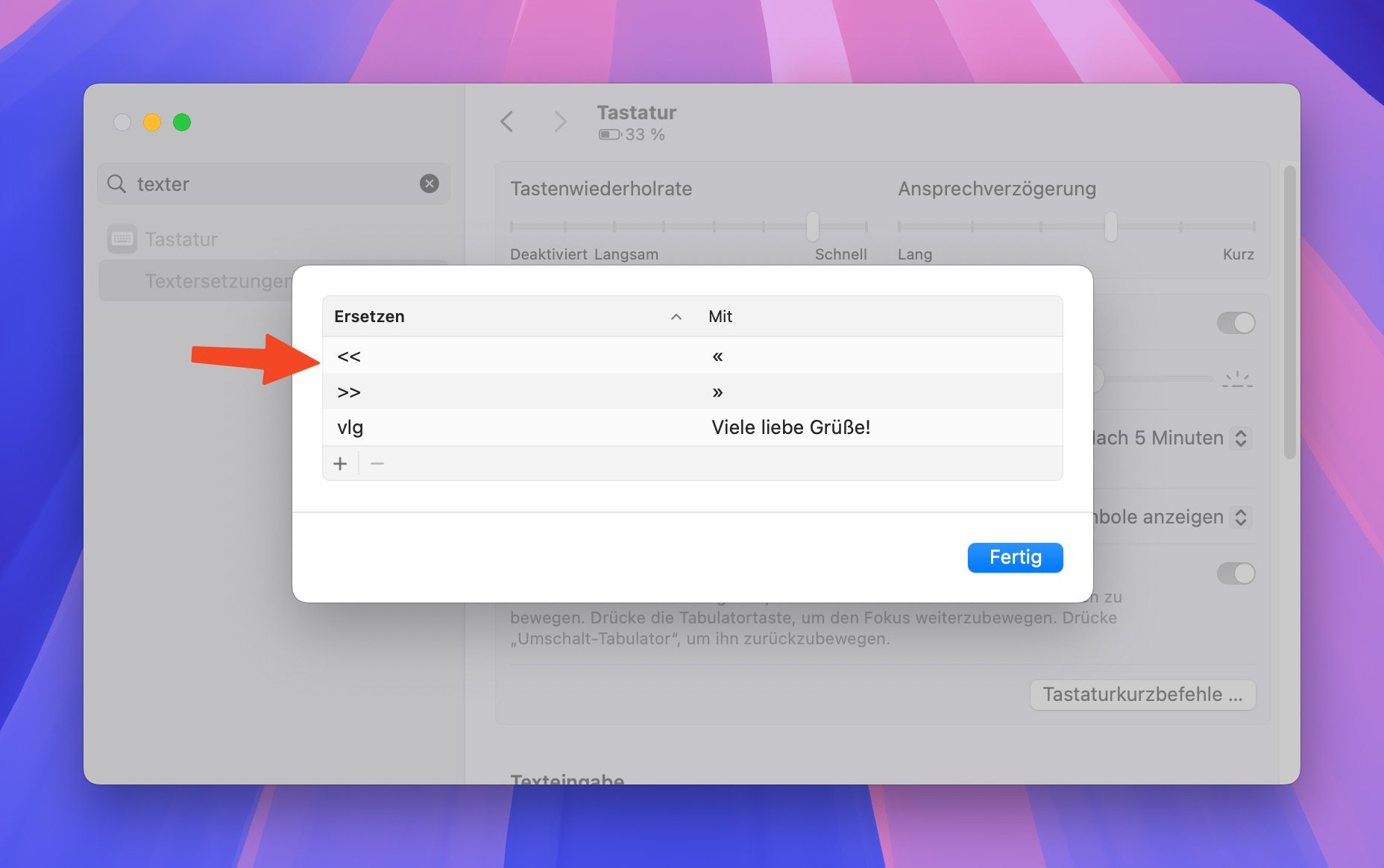 Für Vielschreiber empfehle ich, sich eine Notiz mit « » anzulegen zum schnellen Kopieren. Oder du richtest Tastaturkürzel ein. Das geht am Mac zum Beispiel über Systemeinstellungen ➔ Tastatur ➔ Textersetzungen oder mit Programmen wie Typinator (das ich übrigens täglich im Einsatz habe).